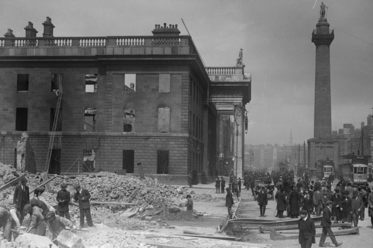 Gmach Poczty Głównej (GPO) w Dublinie to miejsce uświęcone krwią irlandzkich bohaterów. Nad jego głównym wejściem widnieje dziś tablica z napisem w języku angielskim i gaelickim: